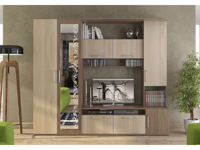 код 103785Стенка сочетает в себе компактность и функциональность. Светлый дизайн.