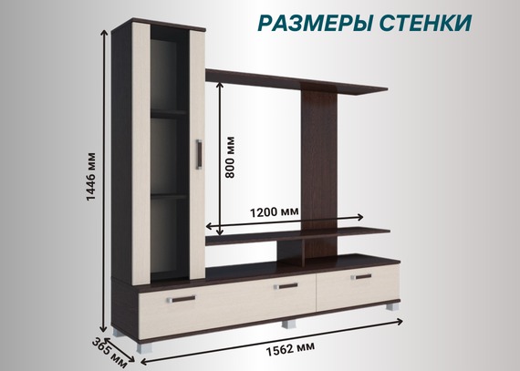 Ширина ниши под ТВ: 1200