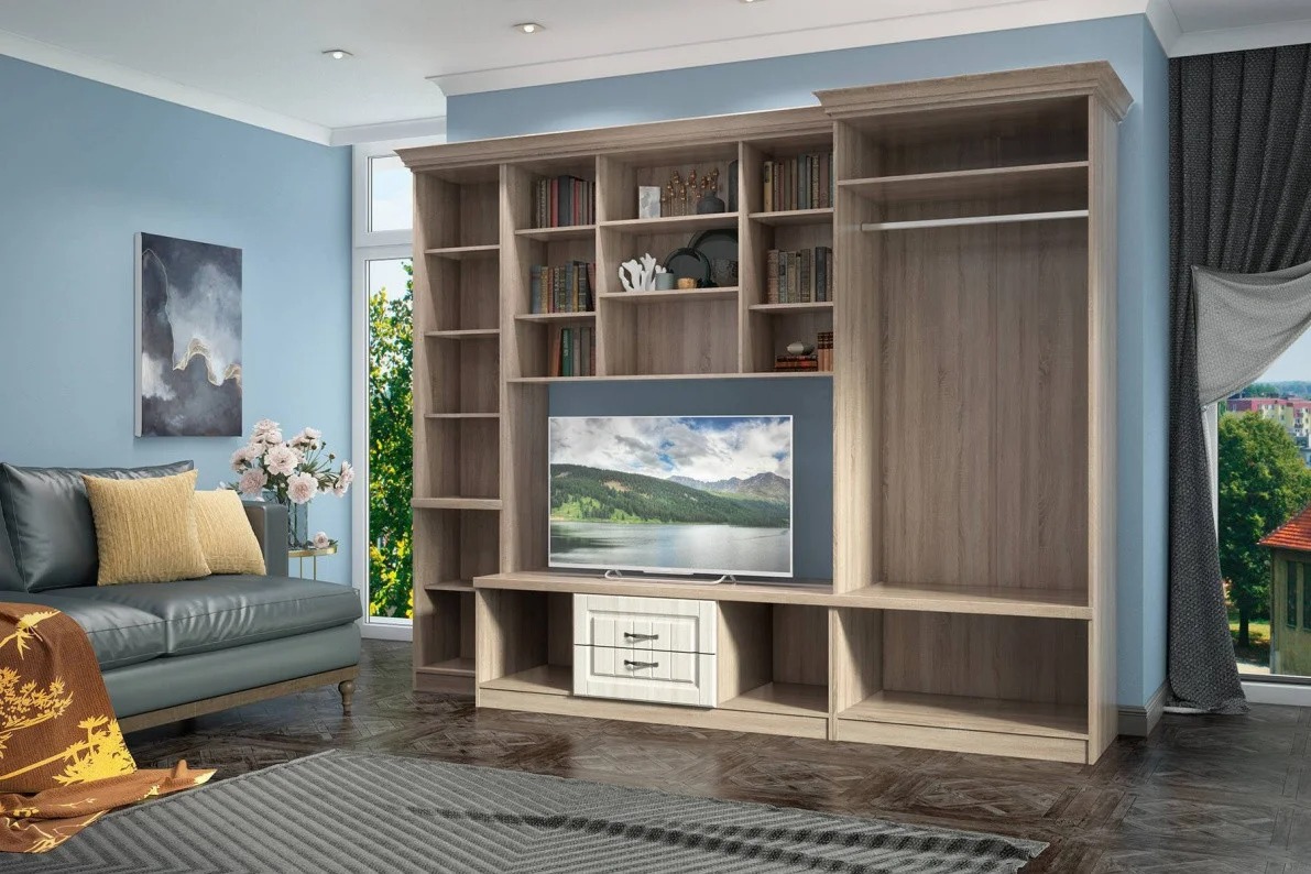Марк - это готовое решение для гостиной и спальни в современном европейском стиле. Размеры: 2930х448х1939 мм.