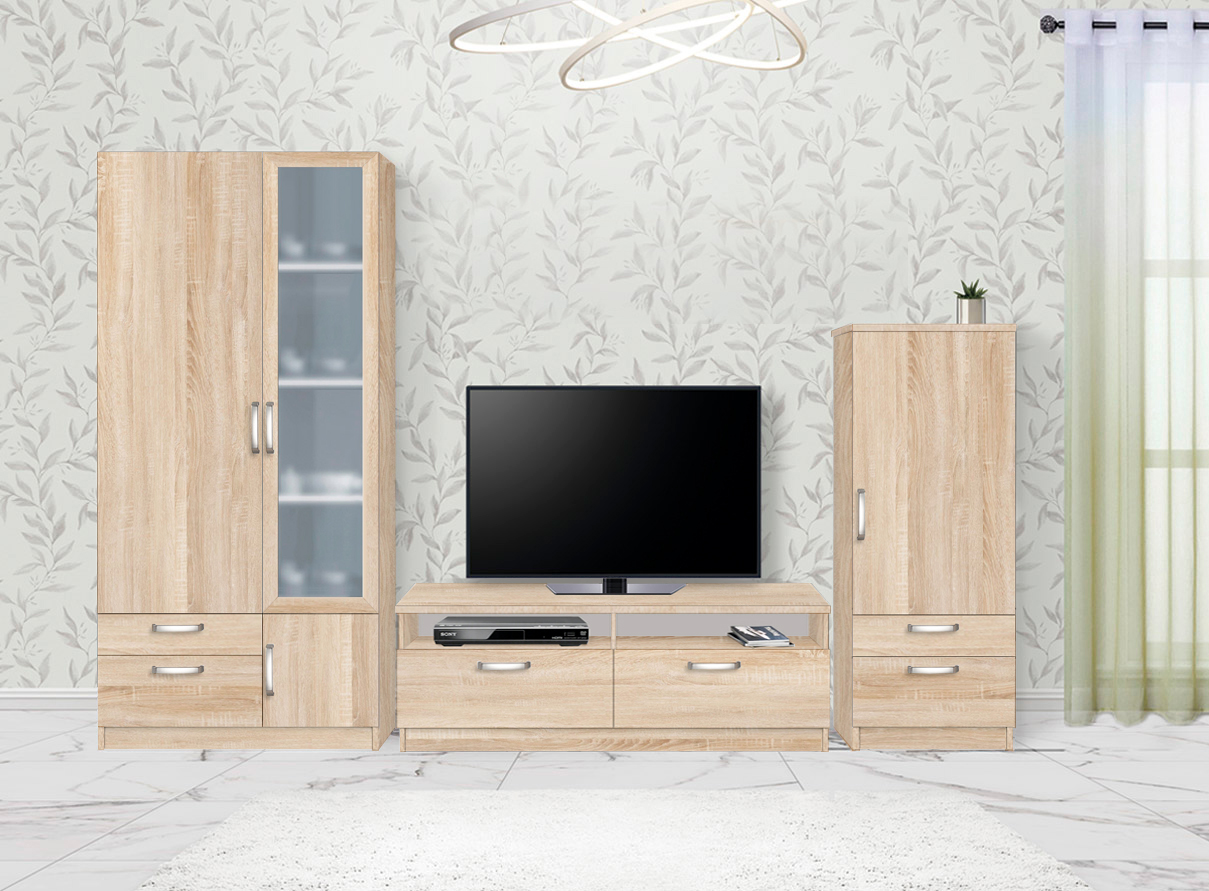 Гостиная «Леонардо» комплект 1, белый/дуб сонома (Мебель-Неман)