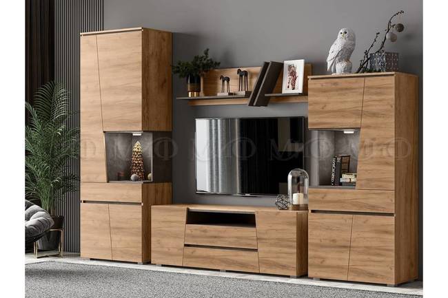 Гостиная «Quartz-10 (Кварц)» Дуб нокс с подсветкой ИнтерЛиния