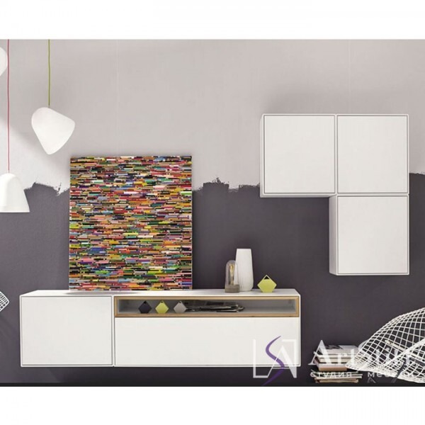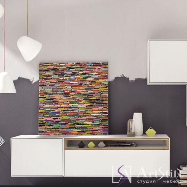 Скандинавская стенка в гостиную. Множество ниш для хранения.