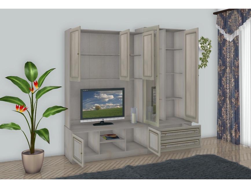 В комплекте: тумба СБ-1278, тумба СБ-1285, шкаф СБ-1286, пенал СБ-1288, витрина СБ-1287.