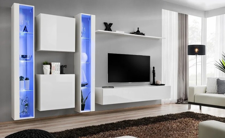 Гостиная «NEO - 7» с подсветкой (белый - белая шагрень)