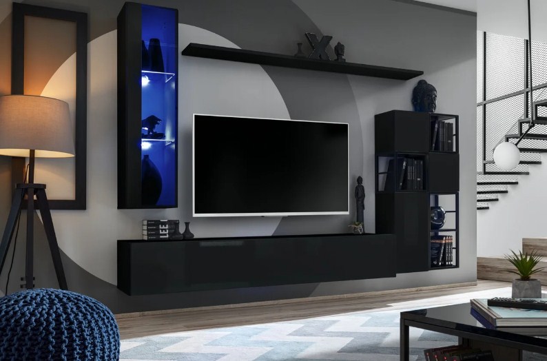корпус: черный мат, лицевая сторона: черный глянцевый ПВХ, рама: черная рамка, черная полка