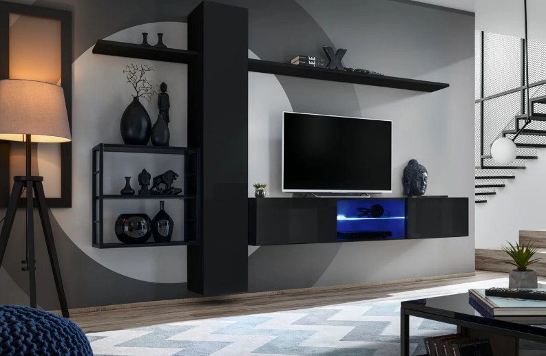 корпус: черный мат, лицевая сторона: черный глянцевый ПВХ, рама: черная рамка, черная полка