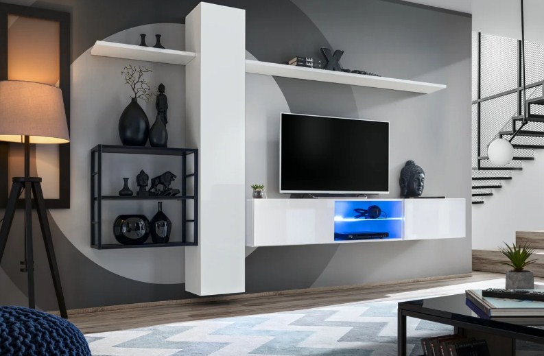 Гостиная «Лия-2» Белый/белый глянец Рикко