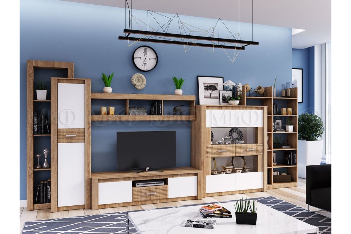 Гостиная «Терра-3» (дуб сонома - белый глянец)