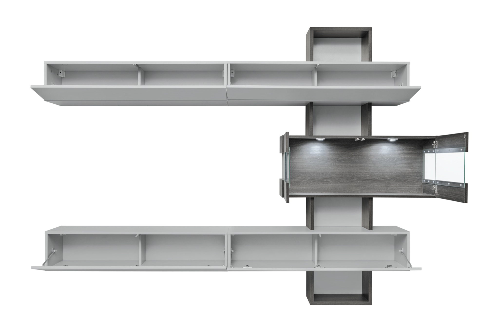 Цвет: дуб сонома/белый глянец. Стеклянные полки с подсветкой.