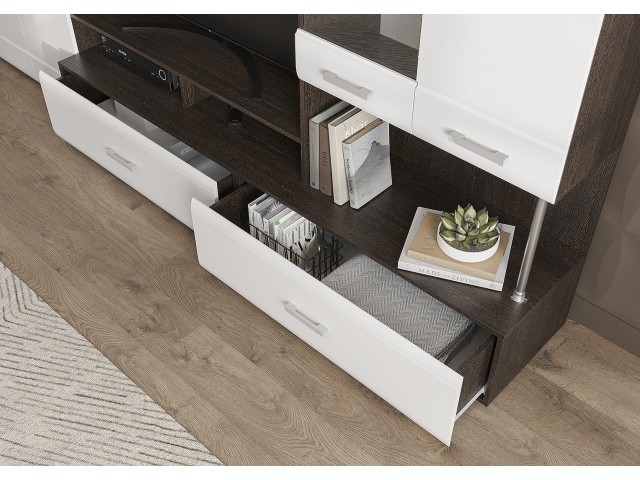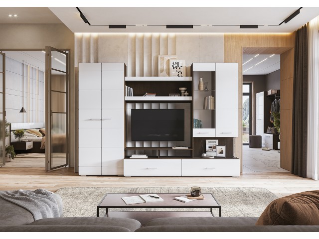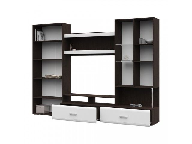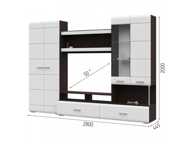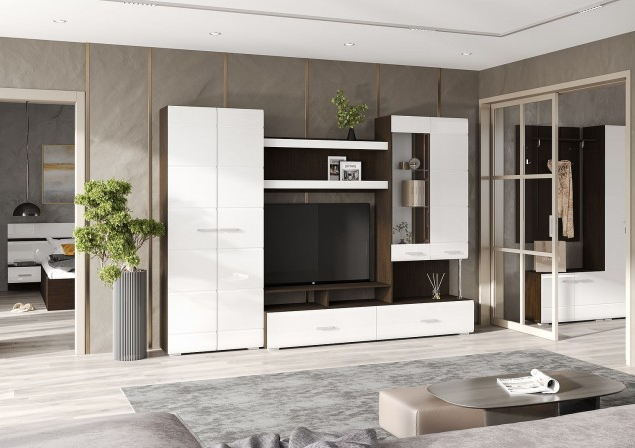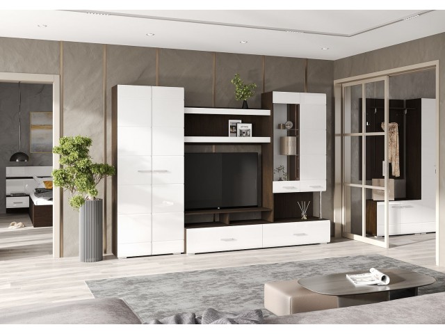 Гостиная «Лия-2 со шкафом» Венге/Белый глянец Рикко