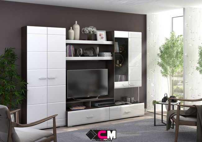 Гостиная «Лия-2» со шкафом Венге /Белый глянец Рикко