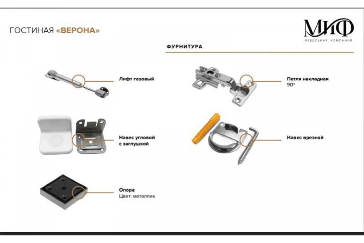 - Фурнитура (мебельные петли, винты конфирмат, шурупы, и т.д.).
