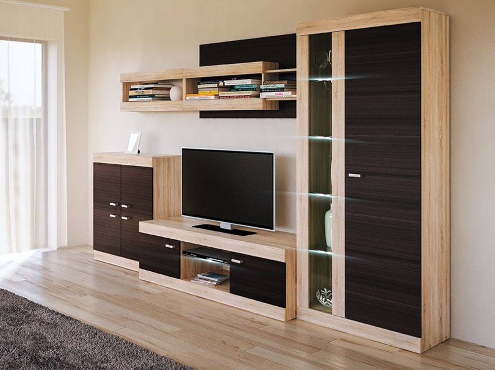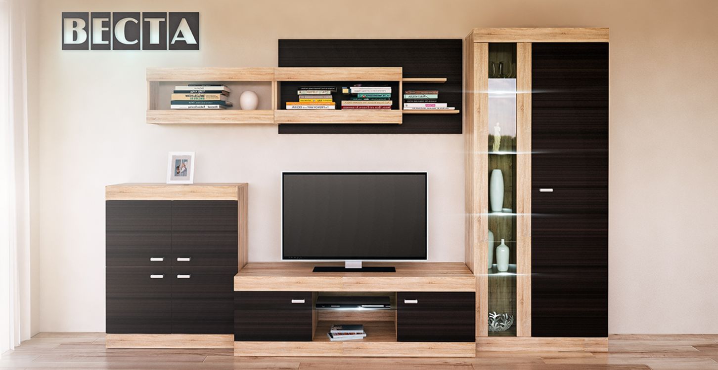 Современный дизайн был спроектирован по результатам изучения основных тенденций европейского рынка модульных систем. В коллекции 7 стандартных модулей, комбинация которых создает множество решений для комнат любых размеров. Фасад и корпус выполнены из ЛДСП. Дизайнерами отобраны два основных цвета - Дуб Сонома и Дуб Ниагара. Цвета имеют древесную фактуру и пользуются высоким спросом среди покупателей на европейском и отечественном рынке.