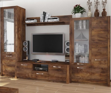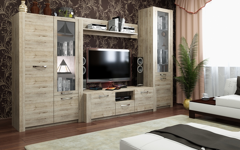 4-х створчатый шкаф, тумба под ТВ, навесная полка, 2-х створчатый шкаф для одежды.