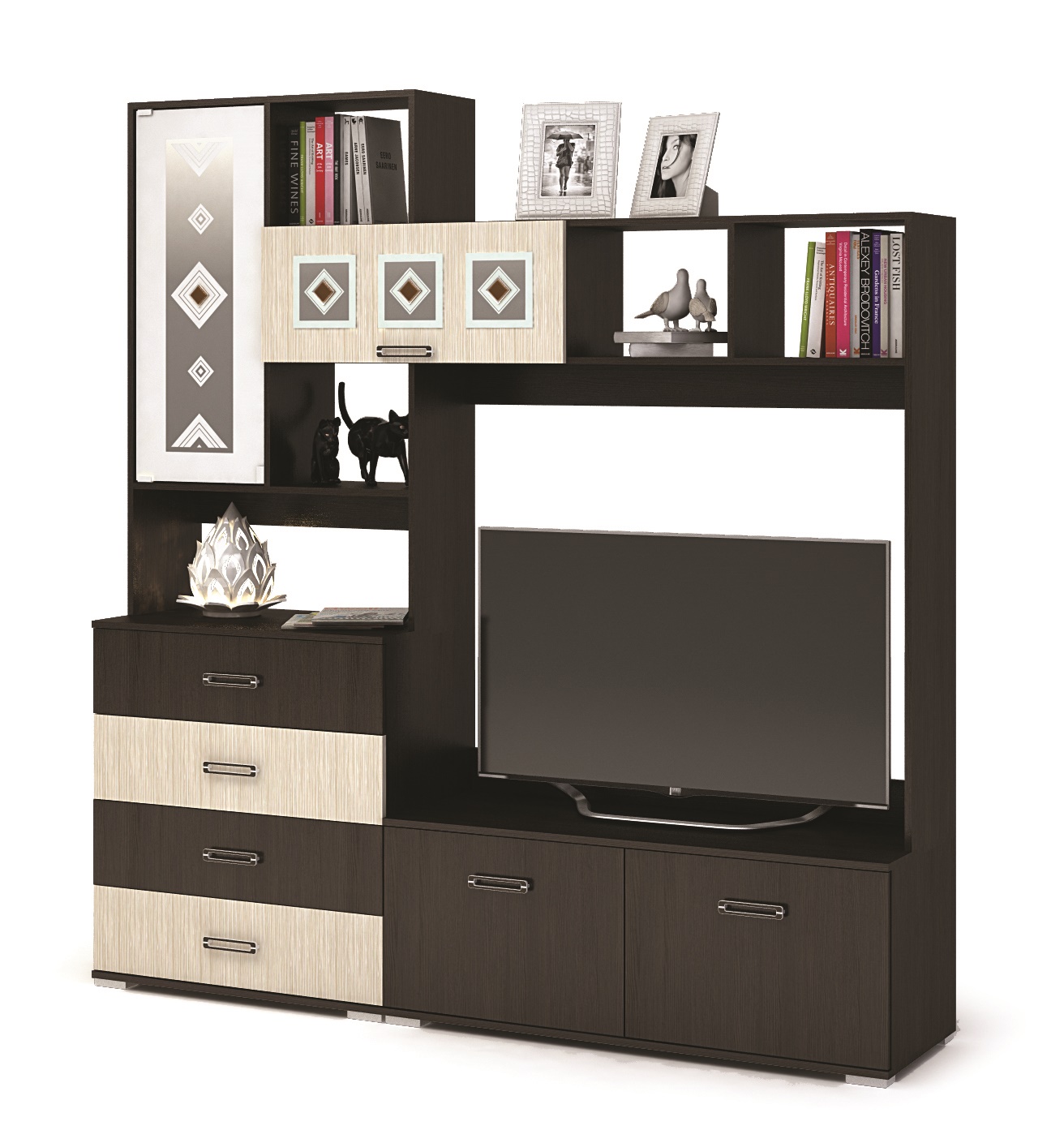 код 103781Функциональная стенка с современным дизайном. Темно-светлые фасады.