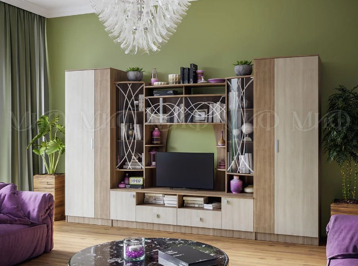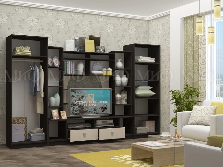 Шкаф распашной, пенал, напольная тумба, ниша для ТВ, открытая навесная полка.