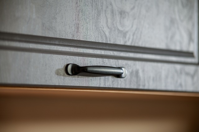 Лаконичные ручки из металла черного цвета в виде скобы и кнопок выглядят элегантно, выигрышно подчеркивают цвет фасадов.