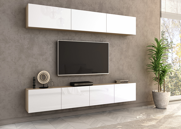 Модель состоит из двух подвесных модулей. Фасады выполнены в белом цвете с системой открывания tip-on.