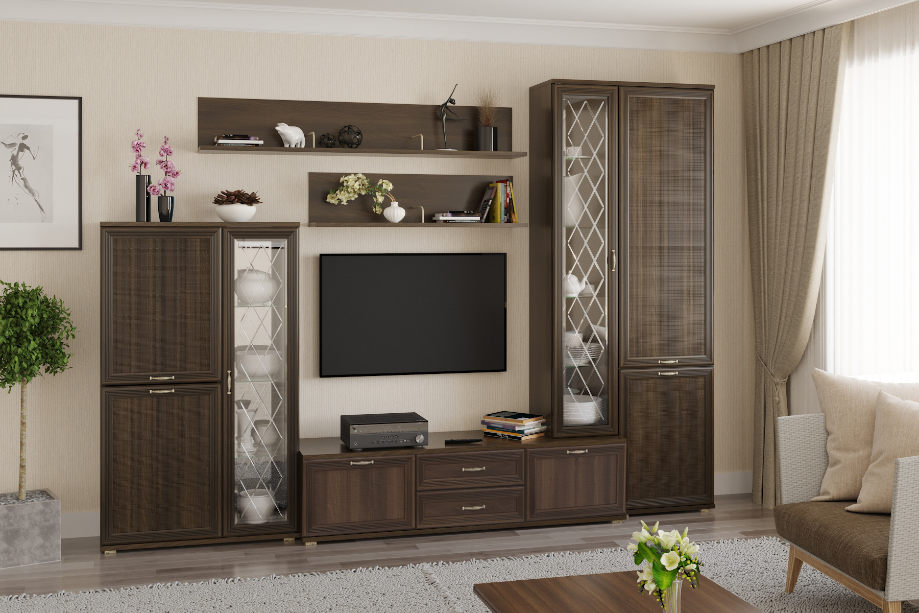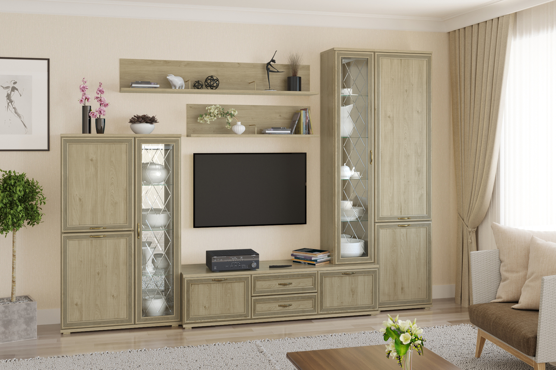 Модульная коллекция мебели в классическом стиле для гостиной. Материал: МДФ покрытый плёнкой, ЛДСП.