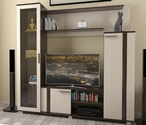 Размеры: 2400х450х2030 мм. Широкая тумба для ТВ. Разноуровневые модули.