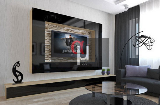 Мебель для гостиной с черными фасадами в стиле минимализм