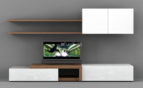 Стенка с глянцевым черным фасадом. Линейная конструкция. Тумбы с выдвижными ящиками.
