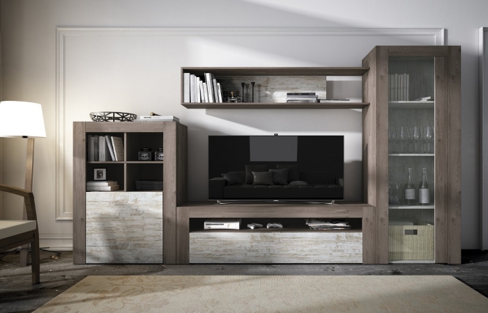 Модульная коллекция корпусной мебели для гостиной. Материал: МДФ покрытый плёнкой, ЛДСП.