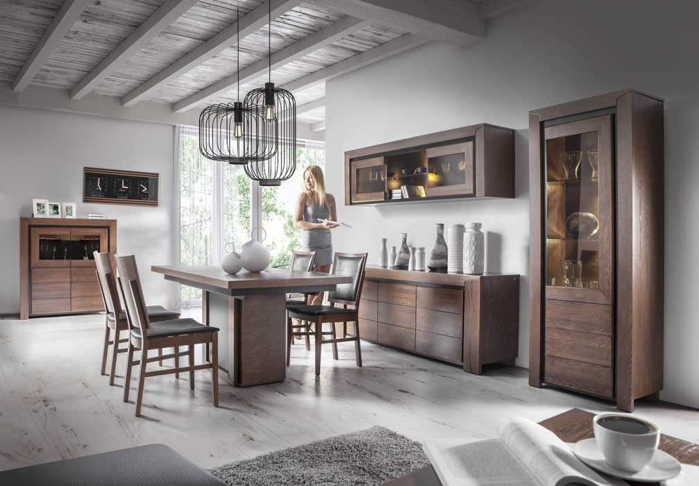 Sempre это уникальная коллекция мебели для гостиной, столовой и спальни - массивные формы фасадов из древесины дуба и корпусов из натурального шпона дуба.
