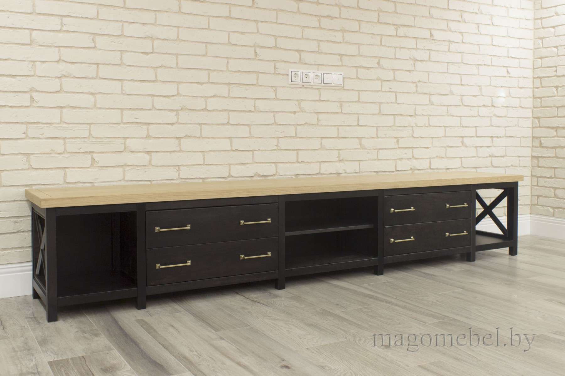 Модульная коллекция мебели в цвете дуба с черным обрамлением. Материал: ЛДСП.