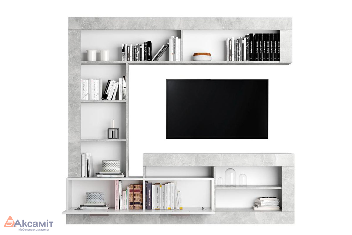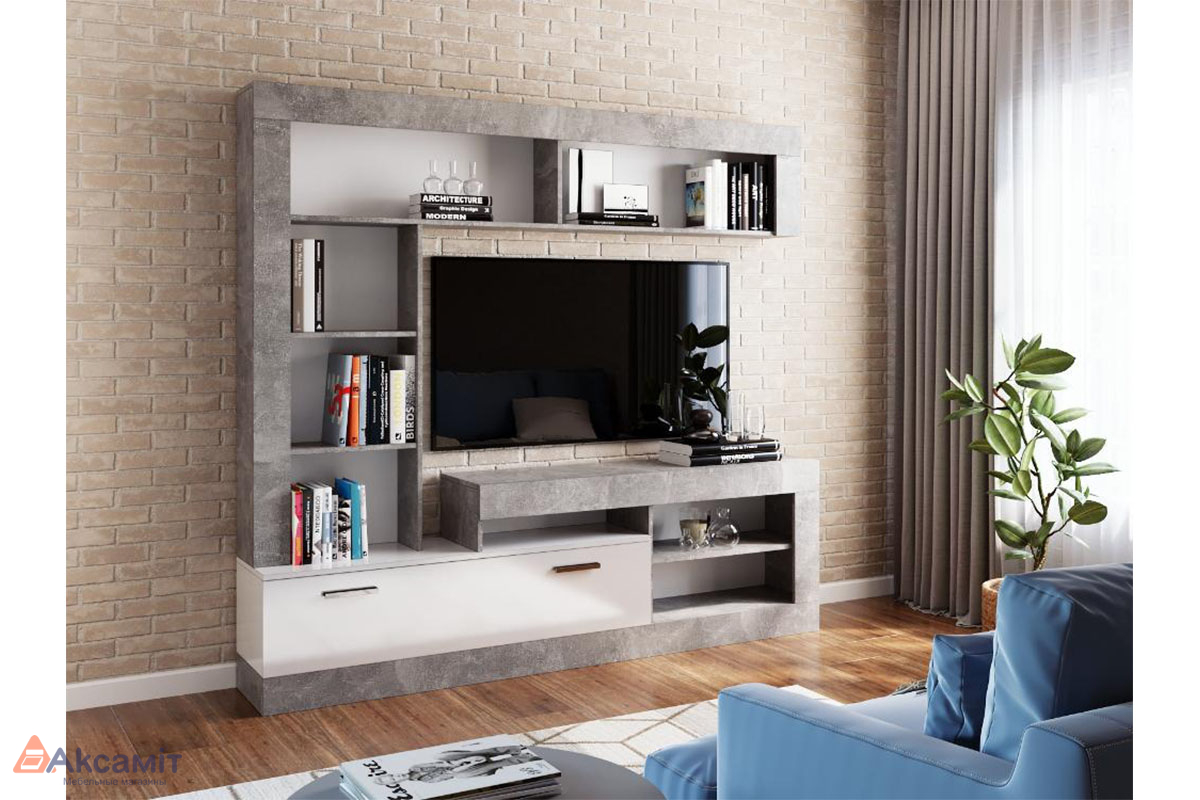 Модульная современная гостиная с фасадами из МДФ. Цвет: сонома / бетон графит.