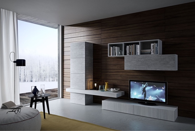Модель состоит из двух Г-образных модулей. Имеется место для ТВ и открытые полки.