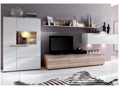 Роскошная модульная коллекция мебели с "волнистыми" фасадами для гостиной. Материал: МДФ покрытый плёнкой, ЛДСП.