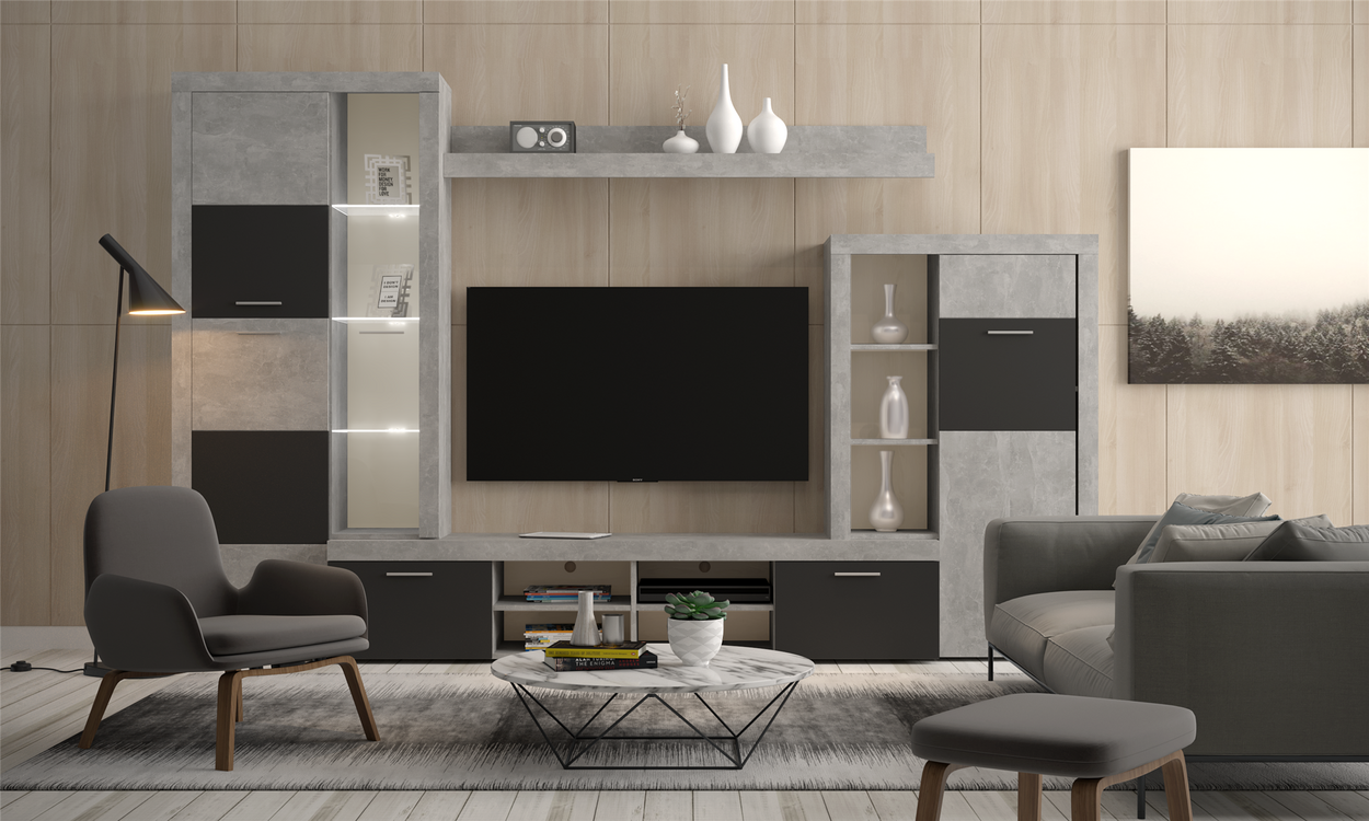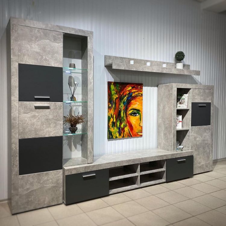 Модульная гостиная «Альпин» бетон ательер-антрацит