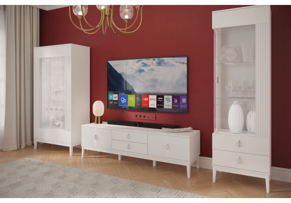 Гостиная «Йорк» с комодом (белый/белый глянец) фабрика Империал