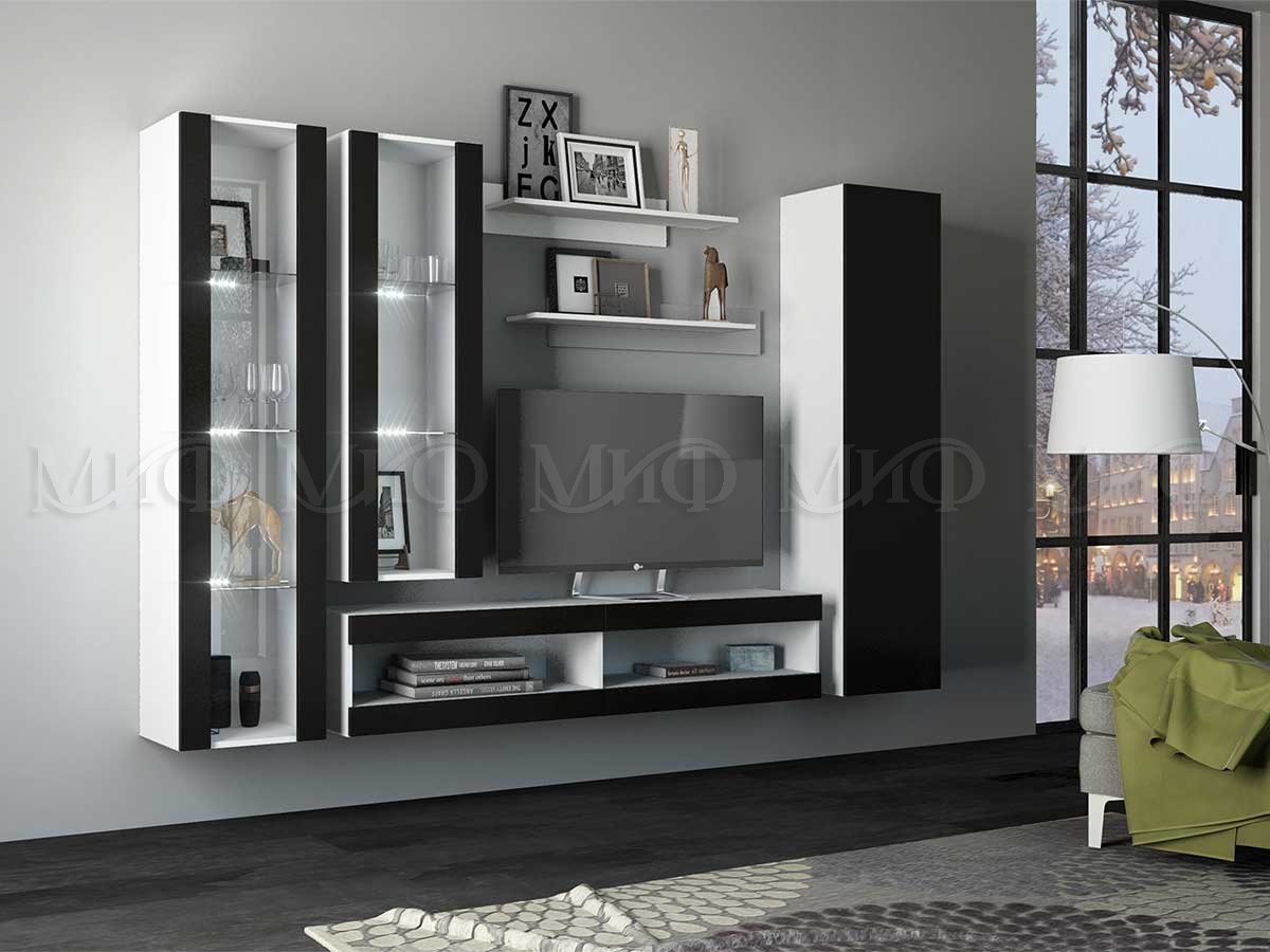 Модульная гостиная «Флорис» Комплект 1 - Черный глянец/Белый