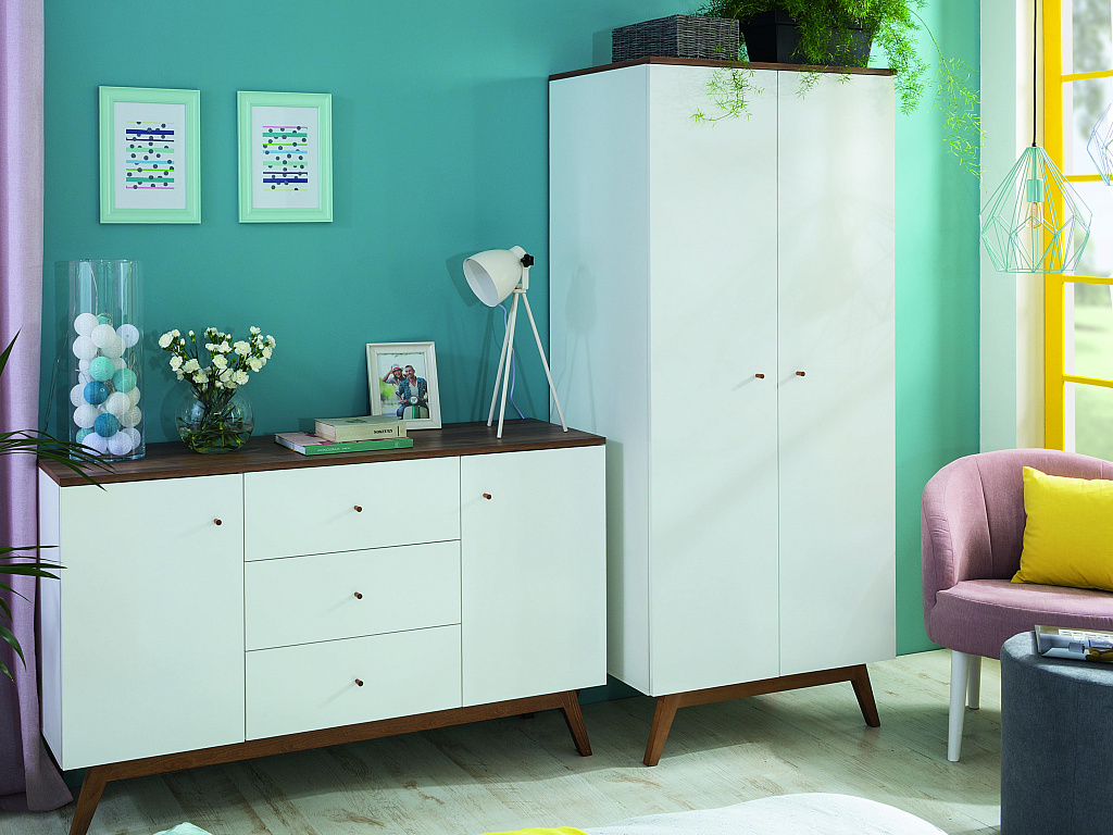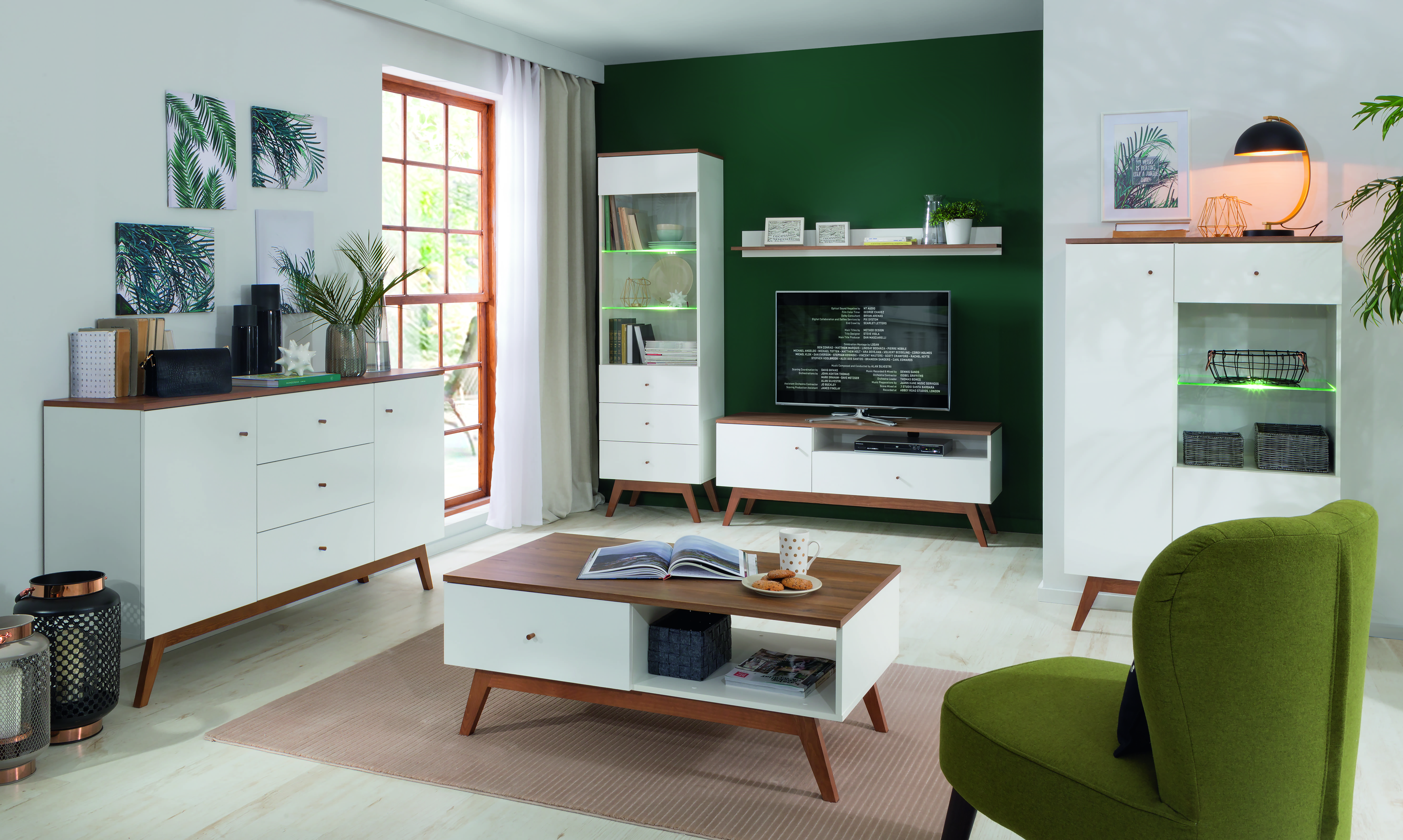 код 151991Комплект мебели для гостиной в стиле сканди с белыми глянцевыми фасадами. Материал: ЛДСП.