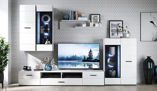 Модульная гостиная «Йорк» белый жемчуг-белый глянец, вариант 1