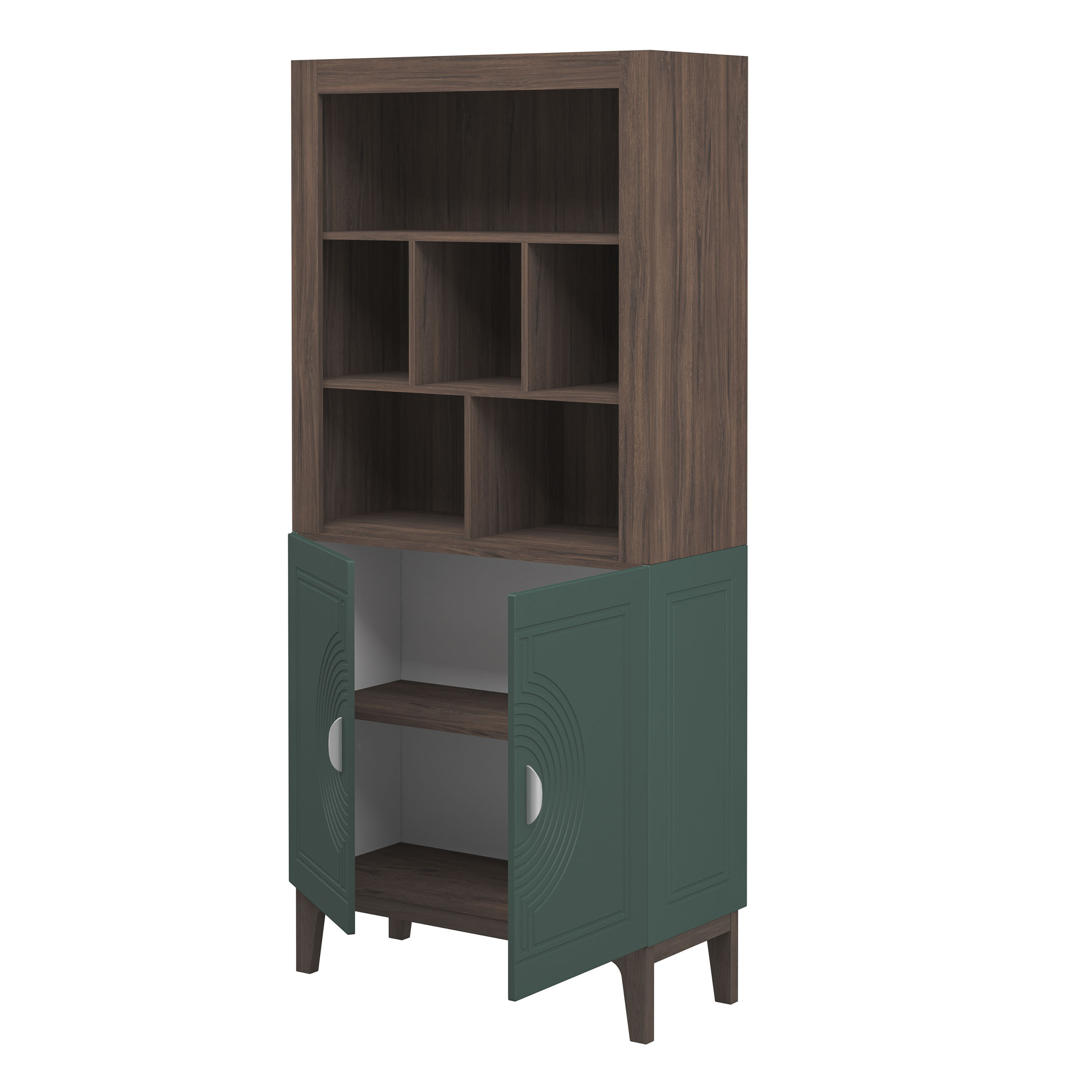 Сочетание насыщенного корпуса Гикори Прадо и акцентного фасада Комбу Грин формирует образ, в котором выразительность встречается с утончённостью. Тёплая древесная текстура наполняет интерьер уютом, а глубокий зелёный фасад придаёт пространству характер и индивидуальность.