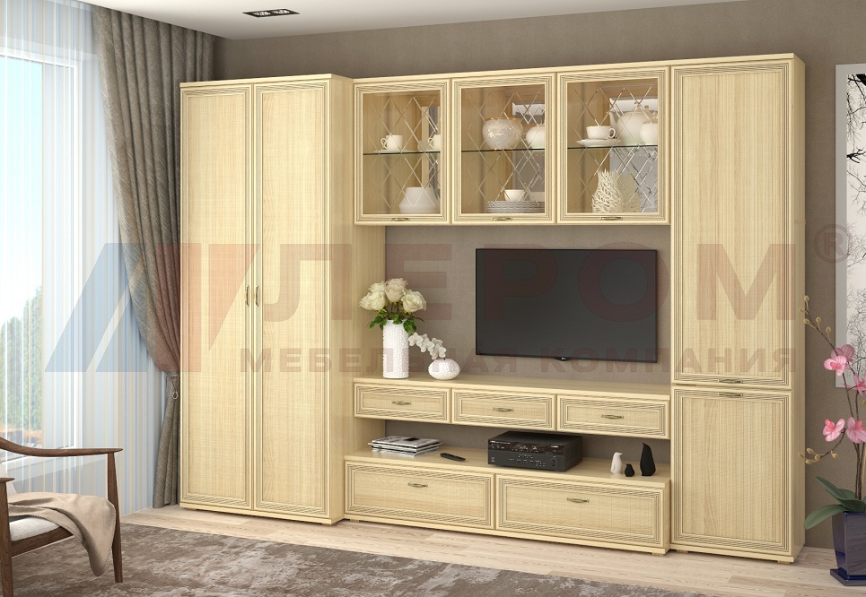 Гостиная «Quartz-4 (Кварц)» Дуб нокс с подсветкой ИнтерЛиния