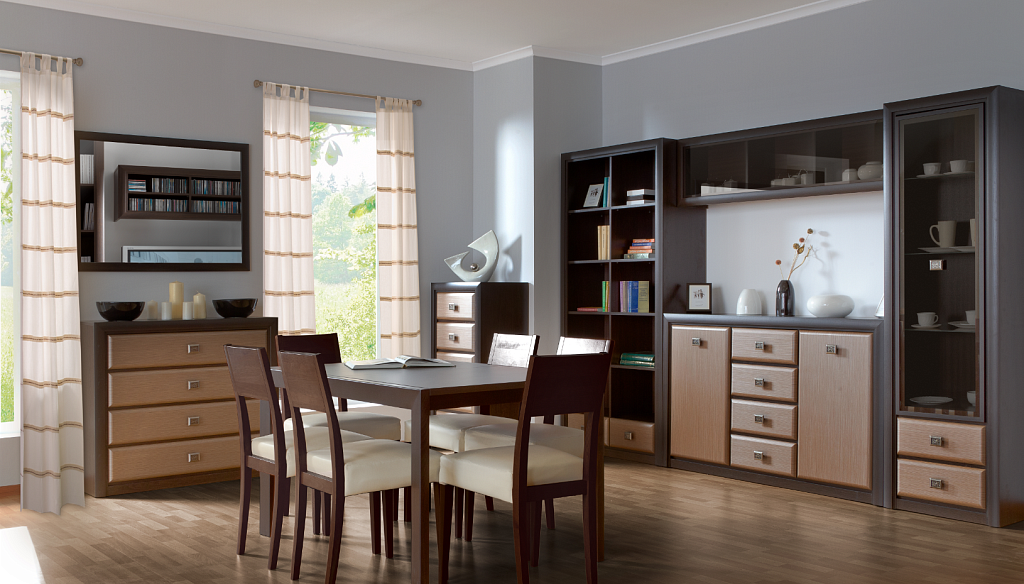 Стенка выполнена в современном европейском стиле. Лаконичный дизайн.