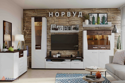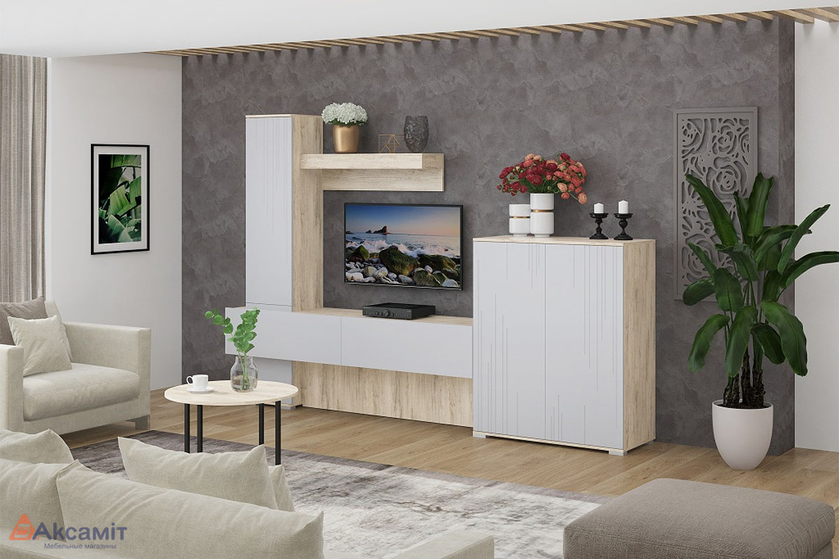 Гостиная «Эверест-1» Дуб вотан/белый шагрень (Рикко)
