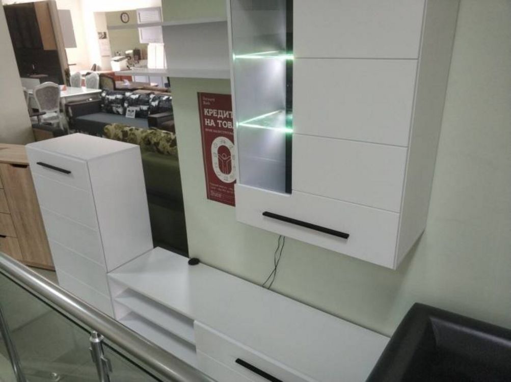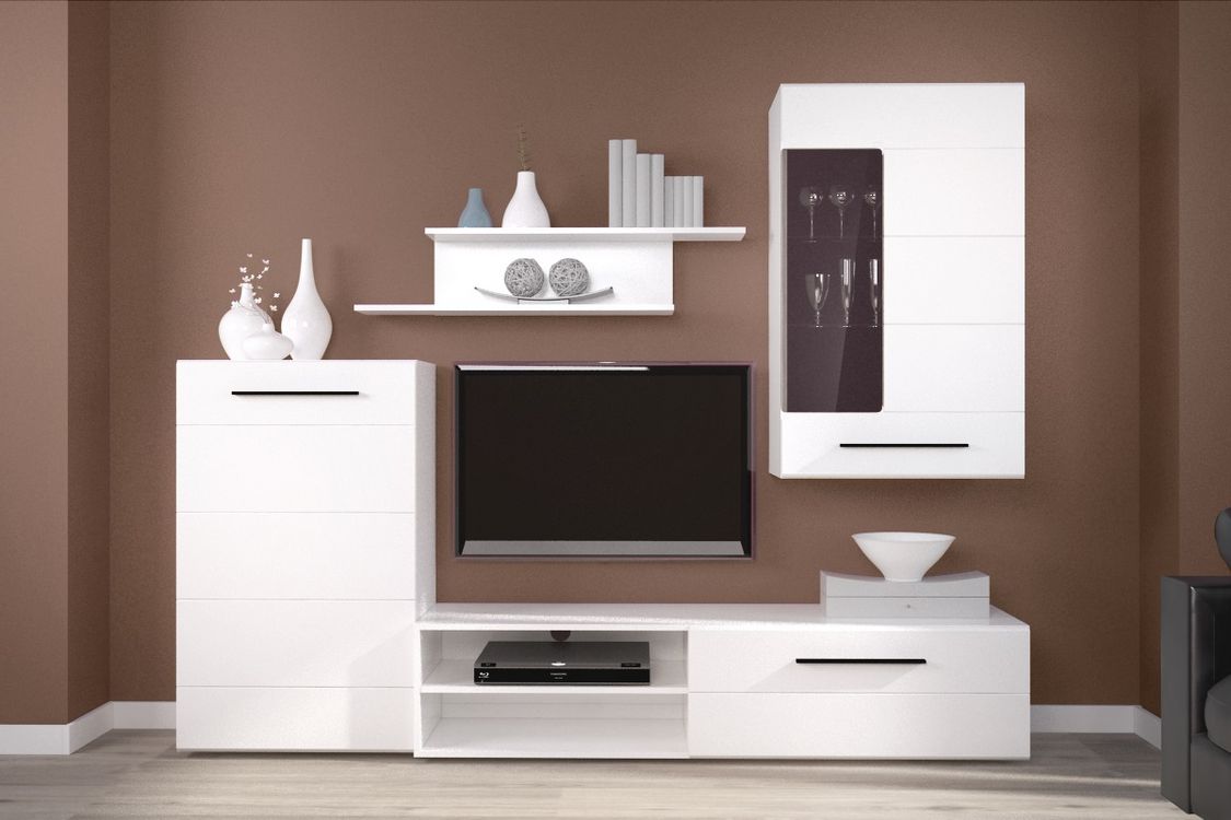 Гостиная Лена - это компактный гарнитур для гостиной универсального белого цвета.