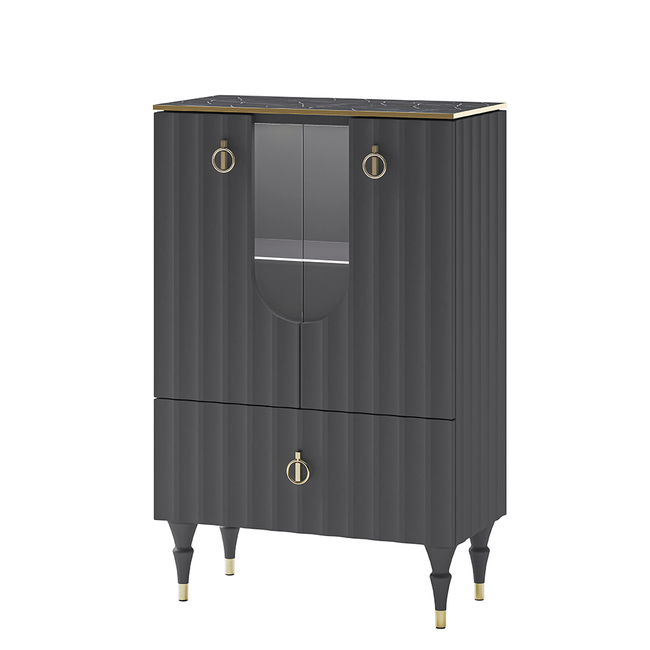 Коллекция мебели Лоренсо – это изысканный дизайн, подчеркнутый золотой металлической линией на изящной утончённой столешнице Мрамор Неро Маркина. Дизайнерские резные ножки из дерева придают коллекции легкость, а инновационное матовое покрытие от итальянских производителей будто приглашает дотронуться до бархатистой волны фасада и ощутить тепло прикосновения. Необычные подвесные шкафы идеально смотрятся вместе, глядя друг на друга прозрачными боковыми витринами, задавая тон всему интерьеру. С мебелью Лоренсо вы окунетесь в атмосферу престижного загородного клуба, где все устроено для вашего комфорта и спокойствия. Мебель Лоренсо – это роскошный фон для вашей жизни.