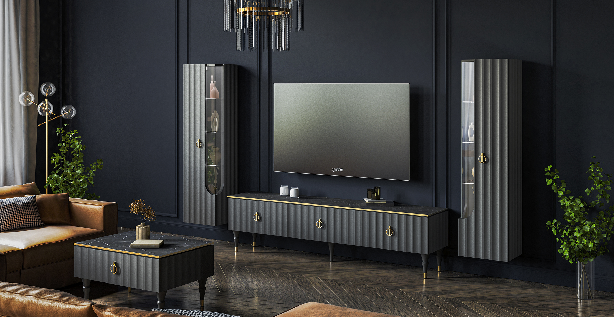 Модульная гостиная «Лоренсо» композиция 3 (графит)