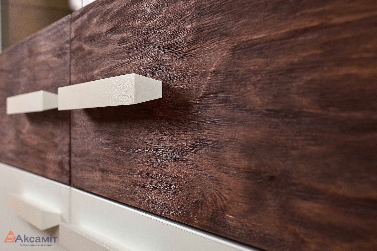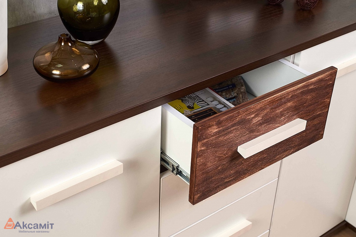 код 106455Материал: ЛДСП, ручки - массив дерева. Цвет: Белый/Орех Шоколадный.