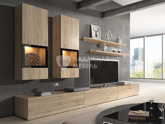 Модульная гостиная с подвесными витринами