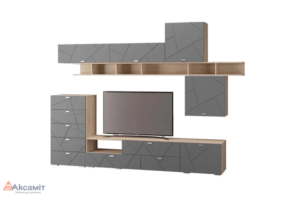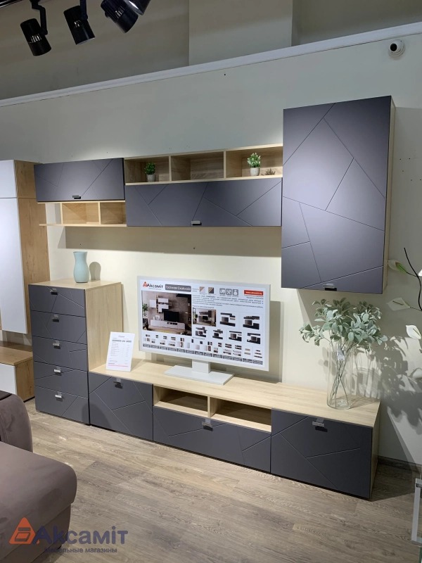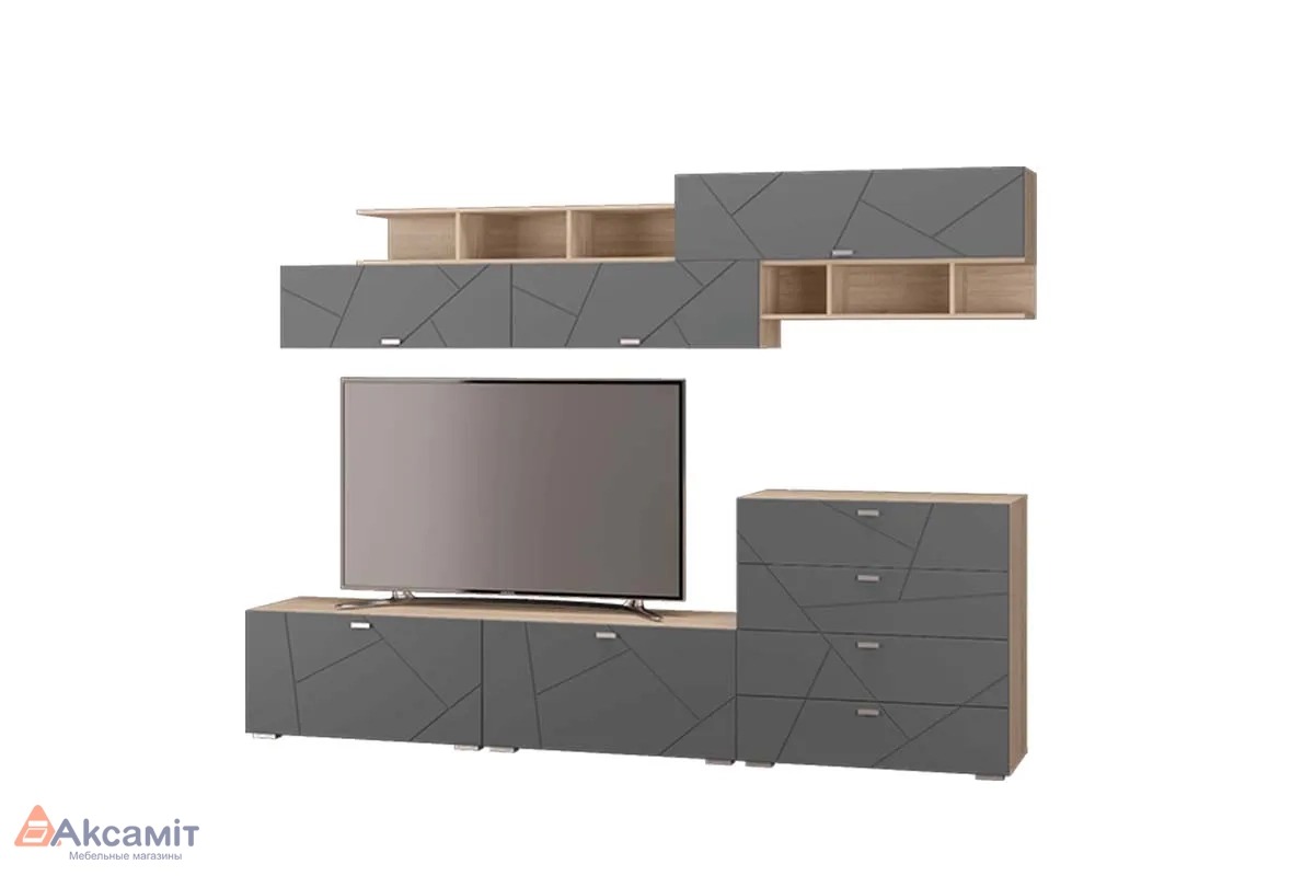 - Тумба под ТВ Скайлайн 1 ящик/2 дверки (Графит). Габариты (ШxГxВ) в см - 210.2x44.5x45.6