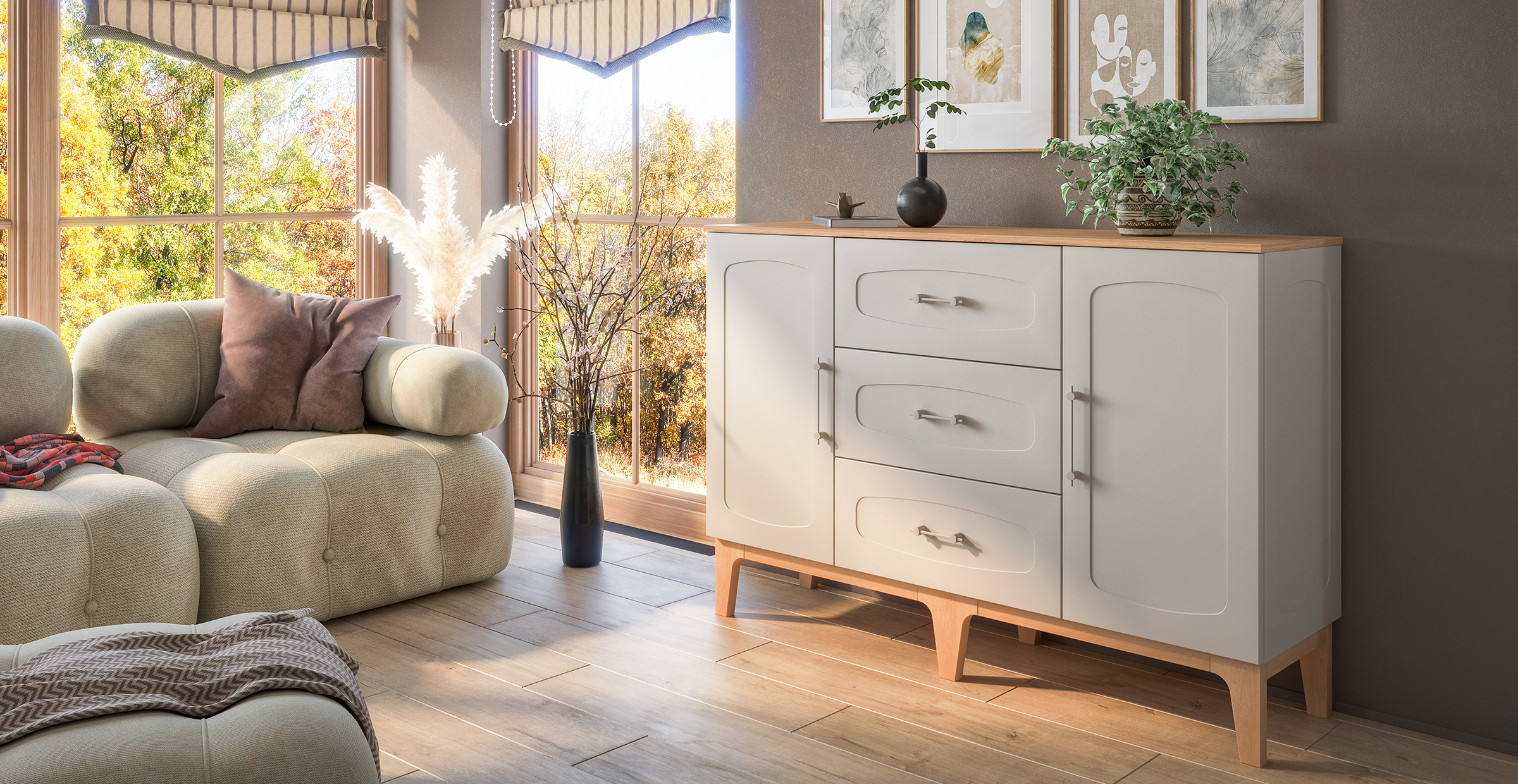 Внимание к деталям отражено в характерной форме ножек, которые зеркально повторяют плавную линию фрезеровки фасадов. Этот продуманный акцент объединяет элементы коллекции в цельную эстетичную композицию, создавая интерьер, дышащий сдержанной элегантностью.