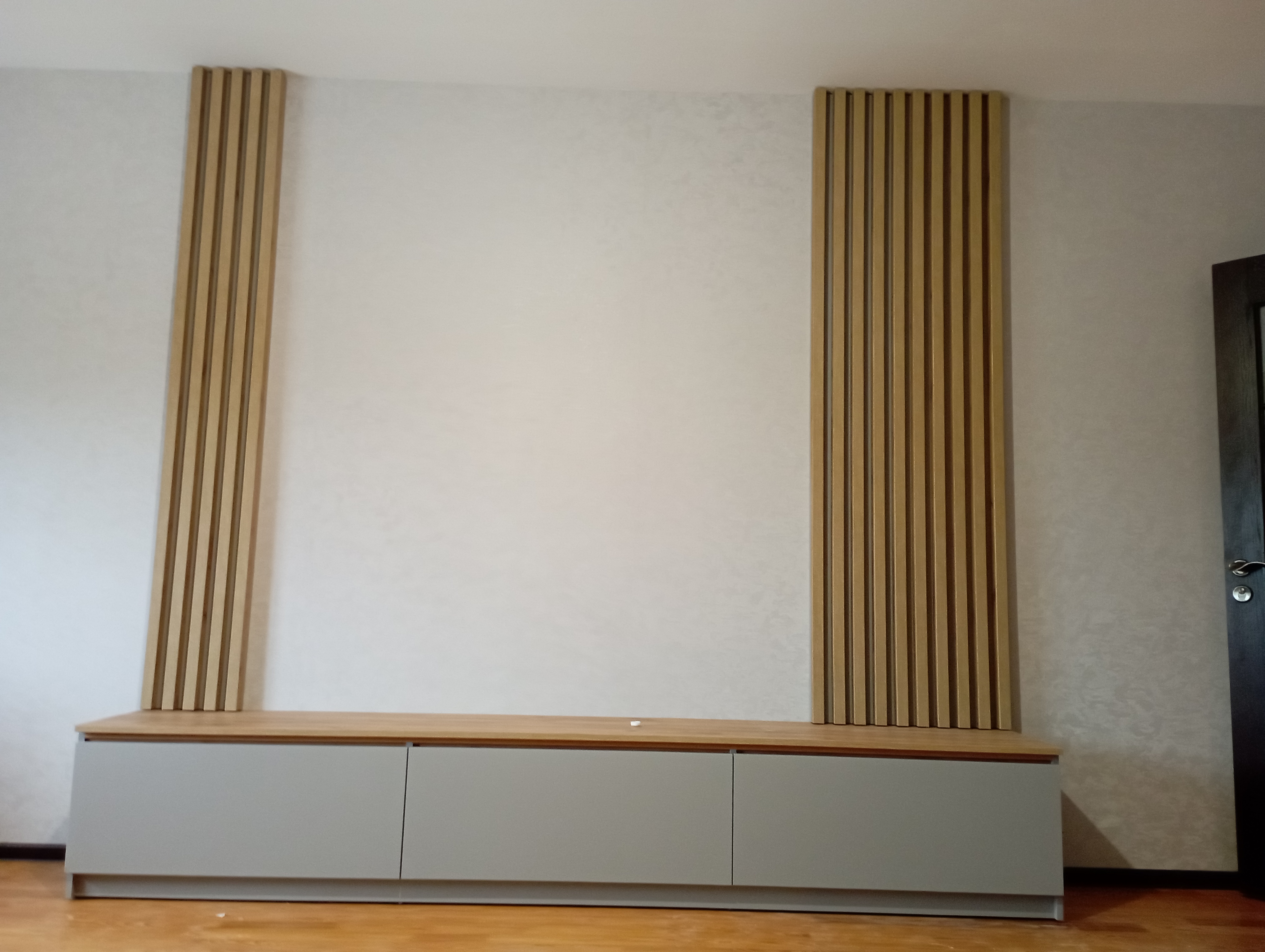 код 140461Матовая поверхность фасадов. ТВ-зона с рейками.