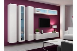 код 110329Контрастное сочетание цветов. Подвесная тумба для ТВ, витрина и два пенала.